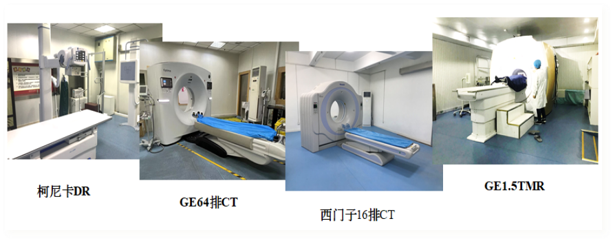 科室有美国GE64排128层螺旋 CT 、东软16排螺旋 CT 、德国西门子16排螺旋 CT 共4台、美国 GE 公司1.5T核磁共振、柯尼卡DR3台等先进医学设备。目前常规开展X线照片(DR)、X线造影、CT、MRI检查;并开展了包括定量CT测高密度、单器官灌注及头颈部、胸腹部、心脏的血管扫描;MRI的神经、纤维和功能成像、全脊柱拼接、不用造影剂的全脑灌注、CT后处理三维重建、下肢力线测量、 PRP治疗前后核磁疗效评估以及骨龄检测等特色检查。近三年,患者检查数量较同期增长4.78%-12.83%,患者满意度92.6%左右;临床诊断符合率91.5%左右。