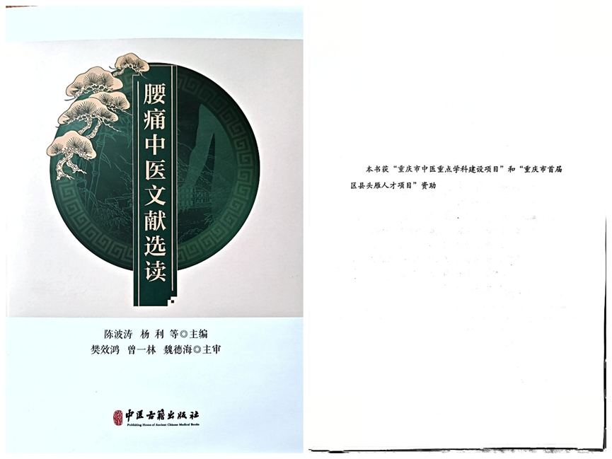 近日,我院骨伤科学科建设迎来重大进展,由骨伤科陈波涛博士团队领衔精心编纂的《腰痛中医文献选读》一书正式出版发行。