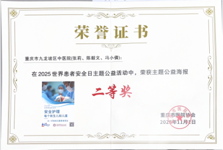 此外,医院的护理团队在“重庆市医院协会患者安全主题优秀海报评选”活动中,从众多参赛单位中脱颖而出,斩获二等奖。